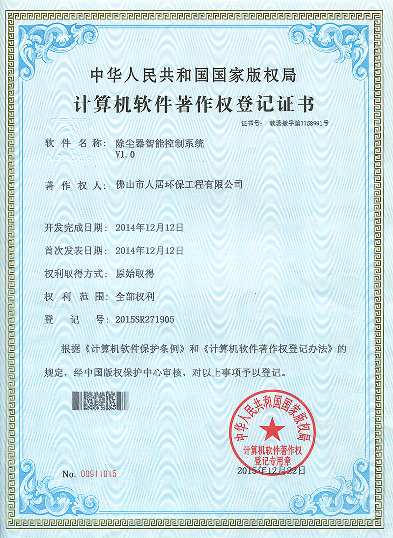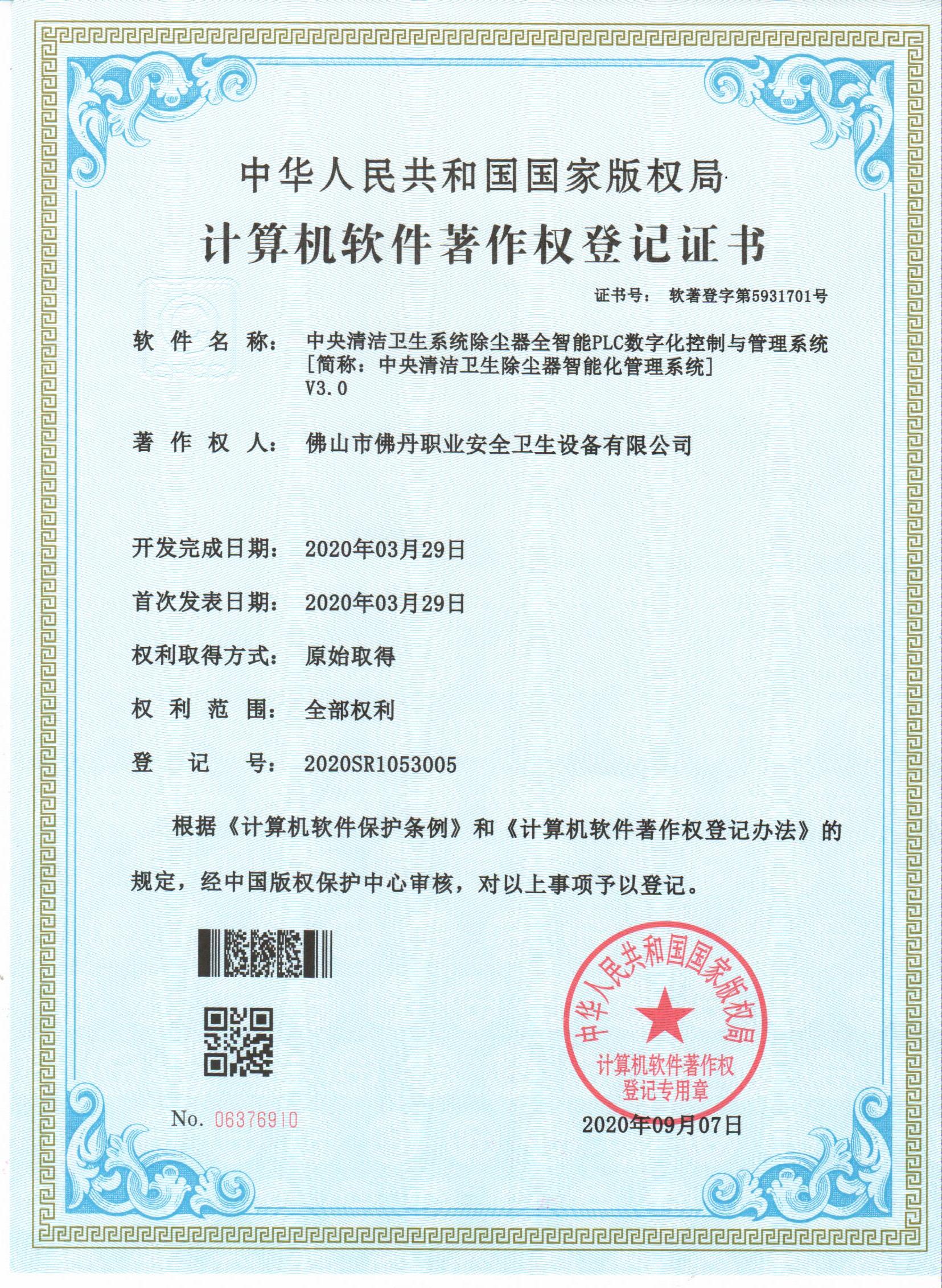 軟著1:除塵器智能控制系統(tǒng)V1.0(人居-2014) 軟著2:中央清潔衛(wèi)生除塵器智能化管理系統(tǒng)V3.0(佛丹-2020)