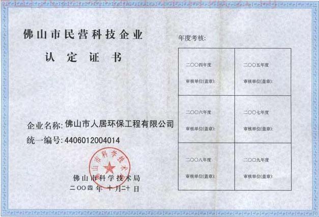 2、1項(xiàng)“佛山市民營(yíng)科技企業(yè)認(rèn)定證書(shū)”
