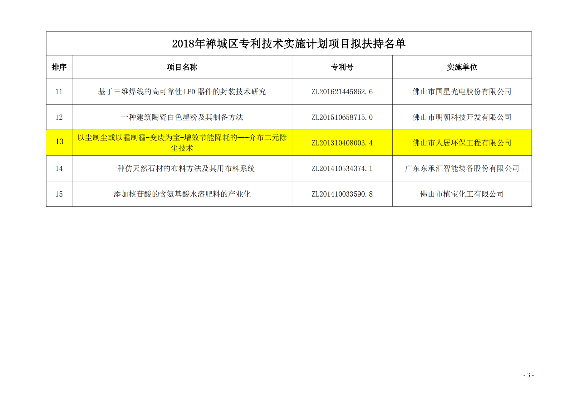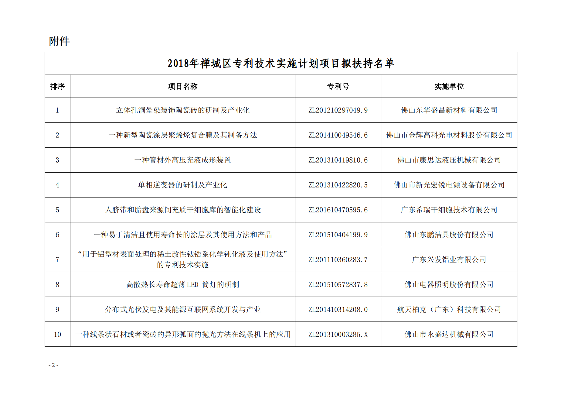 1、2018年佛山市禪城區(qū)專利技術(shù)實施計劃項目